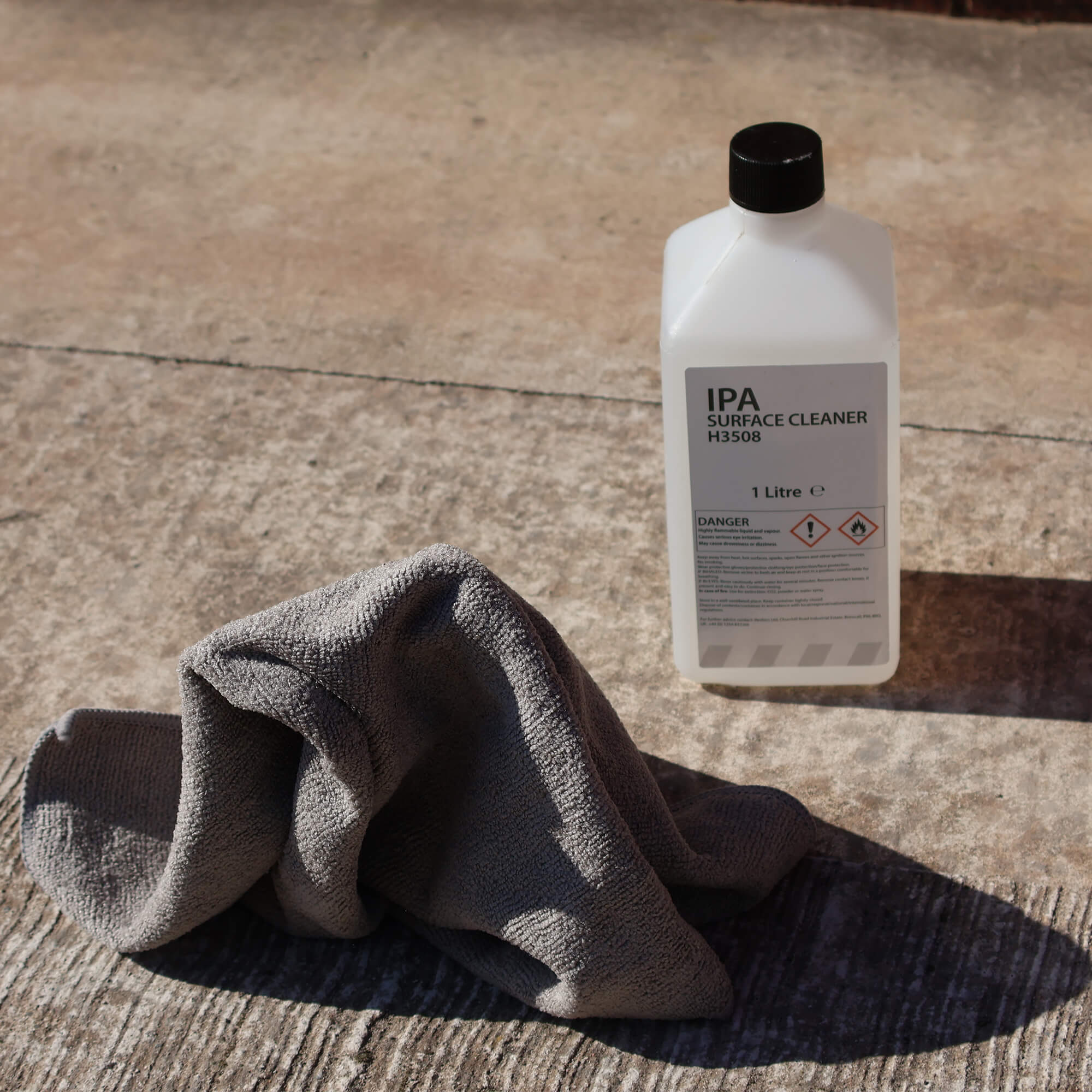 To effectively clean surfaces before our grip tape is applied we recommend Heskins® IPA cleaner, it helps to remove contaminants, it does not leave behind a greasy residue unlike methylated spirits, petrol etc.