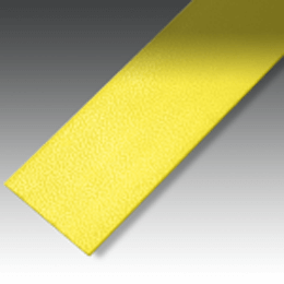 The construction is a solid homogenous piece of flexible plastic 0.05” thick. Unlike normal floor marking tape the color is not a print, the color is an integral part of the product, and it cannot be removed by solvents or even scraped away, even if someone scrapes it the color remains. PermaStripe® is so incredibly thick the edge has to be chamfered to prevent it from becoming a trip hazard. Each roll has is produced individually, not slit, we apply the adhesive using a special laminator, the adhesive is coated completely edge to edge, if an adhesive material is going to fail then it will fail on the edges, no one manages to lift up the middle without edge failure first. PermaStripe® uniquely has an edge to edge adhesive.